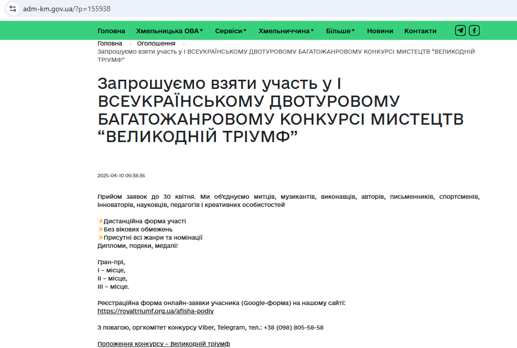 Інстаграм: https://www.instagram.com/royaltriumf.org.ua