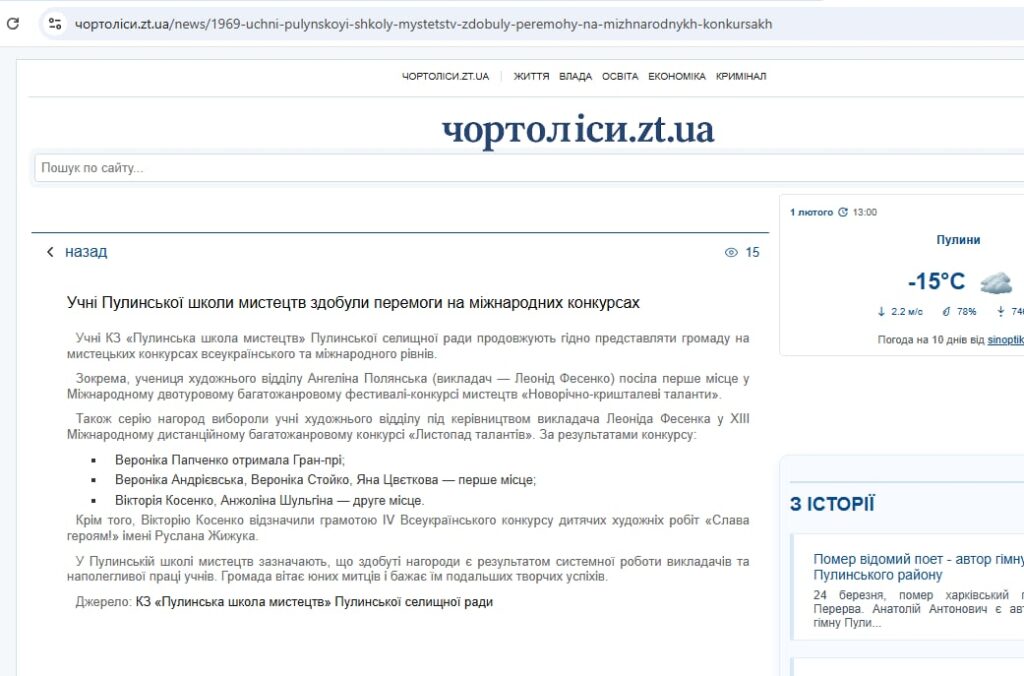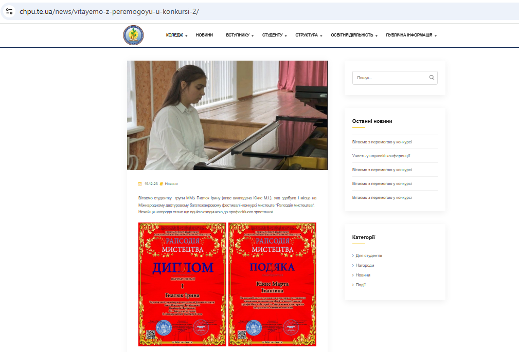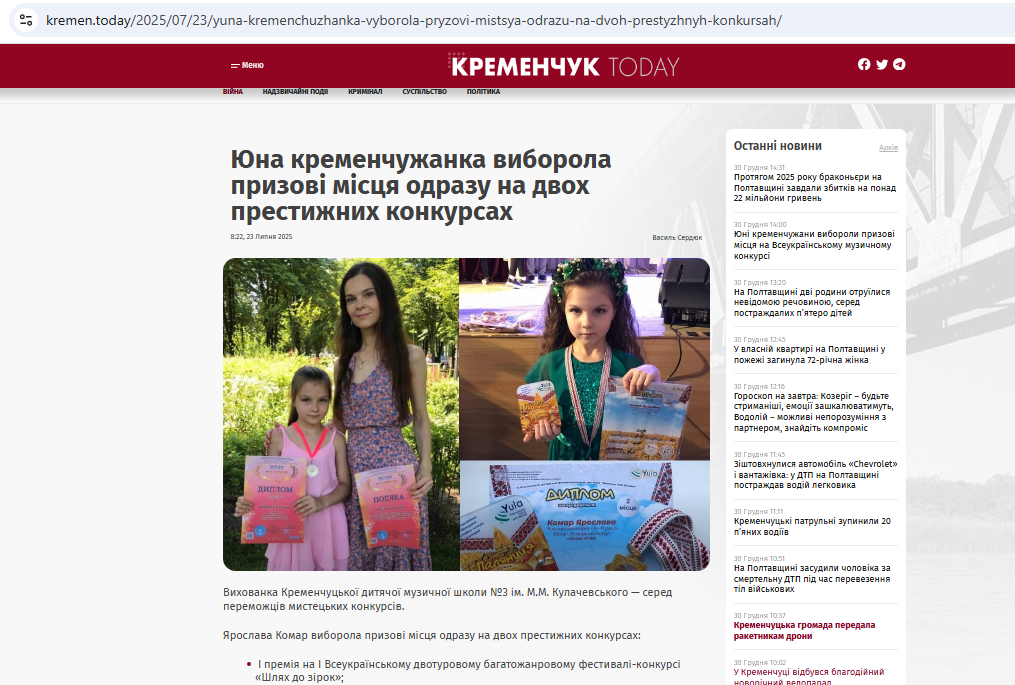ЗМІ про переможців наших фестивалів та конкурсів: