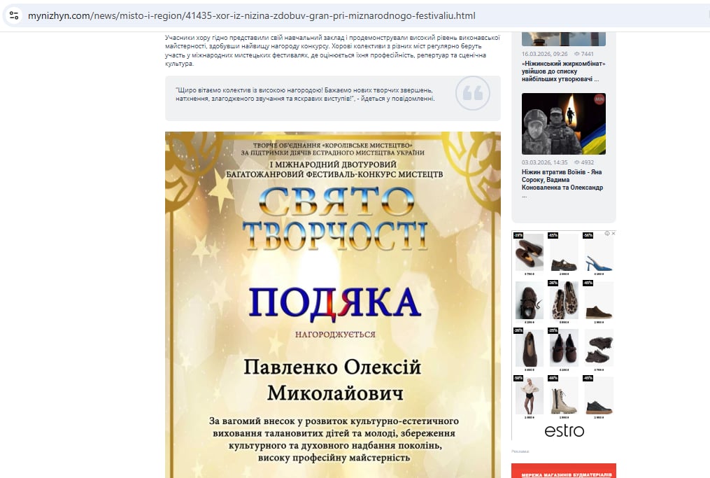 відзнаки конкурсів, медаль, диплом, відзнака, подяка, конкурс мистецтв, фестиваль мистецтв